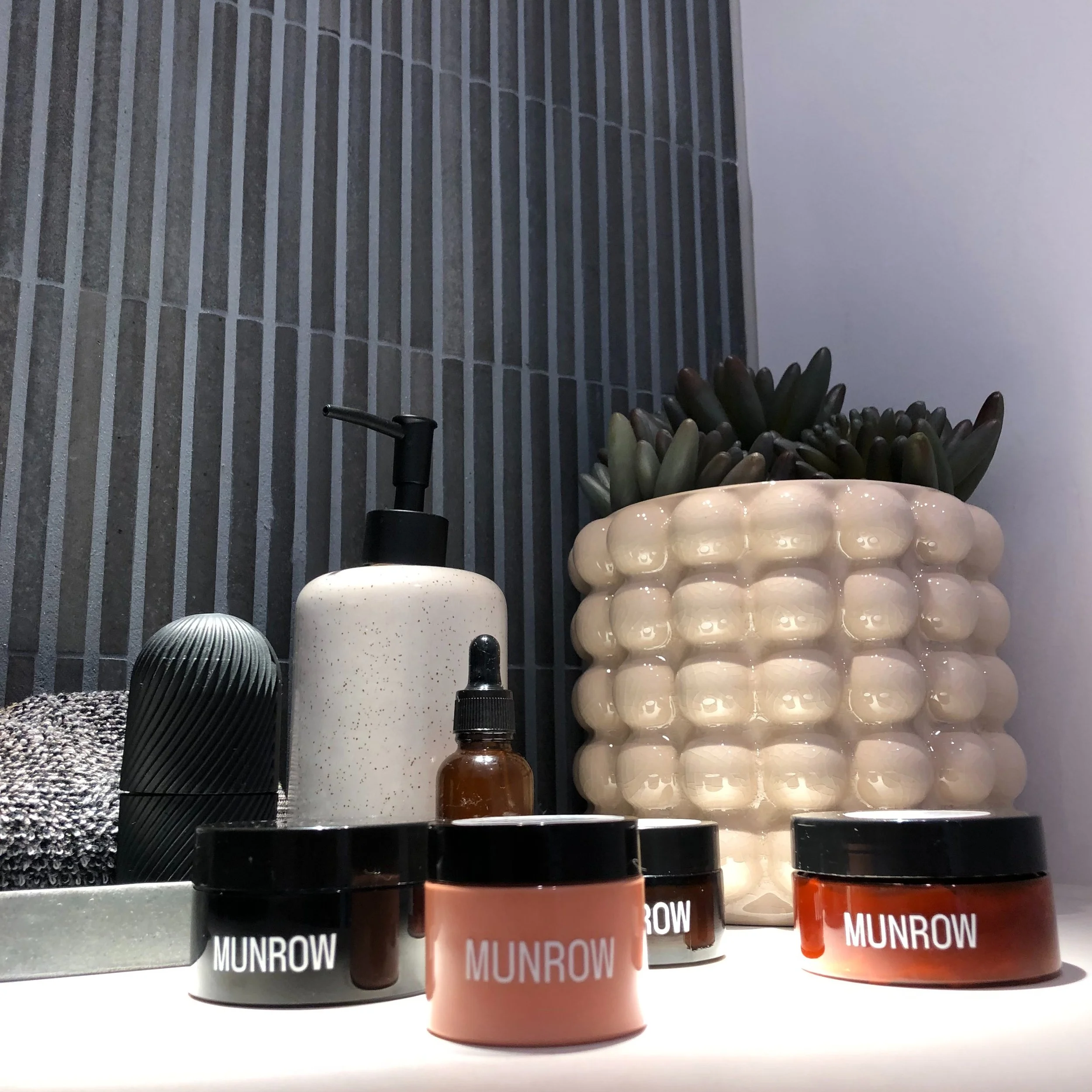 Munrow Oil Balm 100mil $55.00 Munrow Oil Balm 4 x 30mil bottles family bundle. $65.00 Munrow Eastern Shores Sand Scrub 100mil lasts up to 3 months of weekly application $33.00 Munrow Pink Clay Mask 50mil lasts 3 months of weekly application $33.00 Munrow Anti-ageing & Acne Skin Routine $165.00 Munrow Hair Oil 30 mils- 1 drop for short hair and 3 drops for long hair $33.00 Munrow Men's Skin Pack - Anti-ageing deep moisture repair $88.00 Munrow Beard Balm- 2 x 30mil bottles $44.00 Discount Deal 1 x 100mil Munrow Oil Balm, 1 x 100mil ES Sand Scrub, 1 x Pink Clay Mask $88.00 Discount Deal Munrow Oil Balm 100mil buy 2 get 1 free - anti-ageing and skin healing $110.00 Munrow Skin Routine Top Up Pack $130.00 Coming late October 2025 Family discounted pack- SAVE $70 $248.00 Coming Late October 2025 The Ultimate Munrow Pack $220.00 Sold out